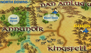 Nan Orngon (7.7S, 61.8W), in Evendim, has great density of level 36-37 bears and nearby vendors, mailbox and stable master in Ost Forod (7.4S, 64.3W). Although there is a quest that goes there, it is rarely camped. Bonus: A named bear, Grizzule, spawns atop the spire in the center and drops an adamant shard.