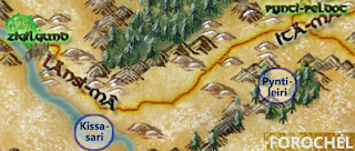 There are two good spots in Forochel, with great density of level 45-46 Sabertooth cats. Pynti-leiri (9.2N, 70.6W) is the better of the two, being closest to Pynti-peldot (11.4N, 69.8W), which has vendors, mailbox, stable master and milestone. If Pynti-leiri is camped, head down the road to Kissa-Sari (5.6N, 78.5W), another great spot. Paha-Peto, a named sabertooth, can spawn in either location and drops a beryl shard. Both locations advance the Forochel Sabertooth Slayer deed (+1 Fortitude) and the cats drop Lossoth of Forochel reputation items.
