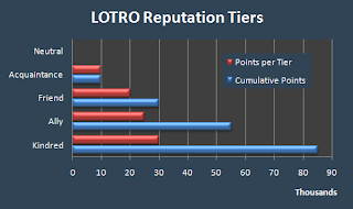 33 | Elves of Rivendell | [33-39] Thorenhad tasks [35] Signet of Rhudaur barter [36+] Trollshaws quests [37-42] Vol 1, Bk 4 epic [39-42] Echad Candelleth tasks [40] Ford of Bruinen daily quest [40, 49] Crafted barter (Scholar) [49 & Acq.] Elf-relic, Goblin-town Tabard barter [45+] Misty Mountains quests [50] Eregion deeds [50] Vol 1, Bk 14 epic |